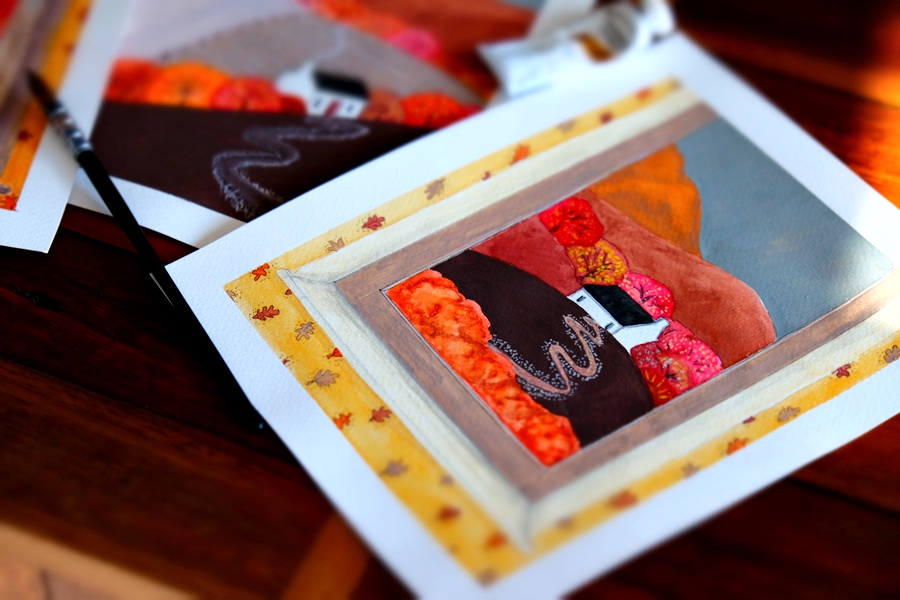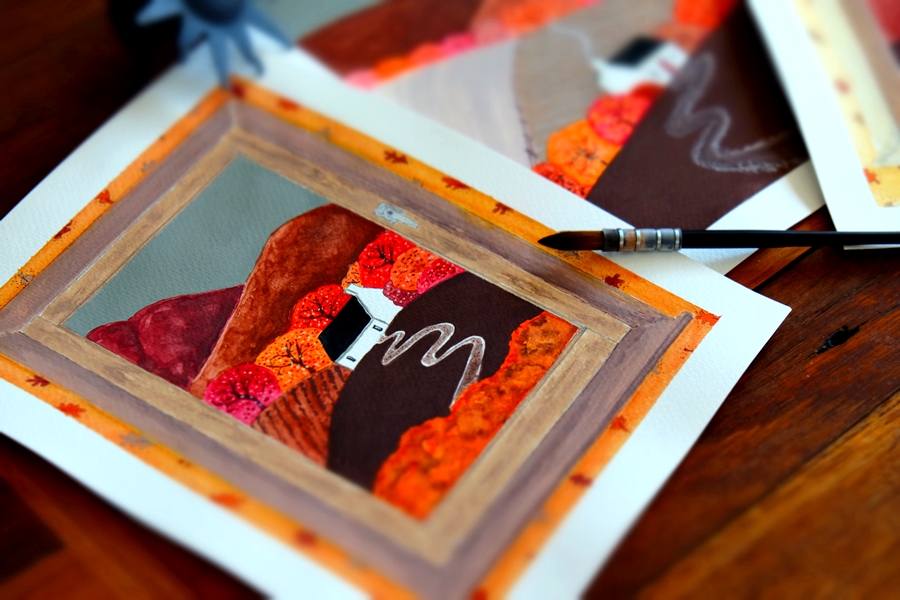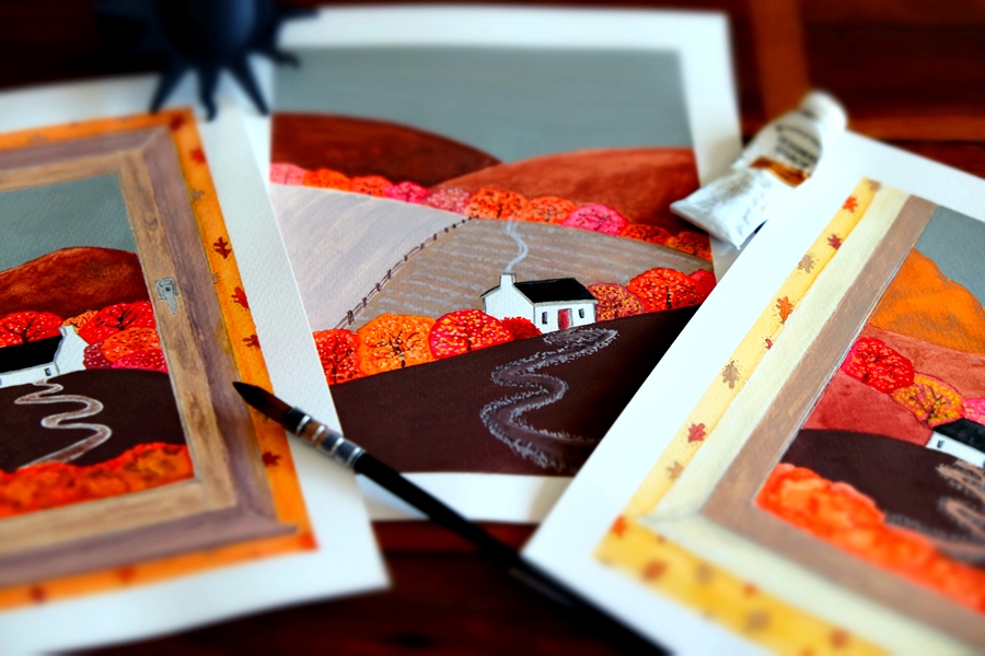 Watercolour, gouache, ink, pencil, pastel — each piece chooses its own voice. Every material brings its own mood: softness, clarity, boldness, calm. Some invite detail, others encourage looseness and play.