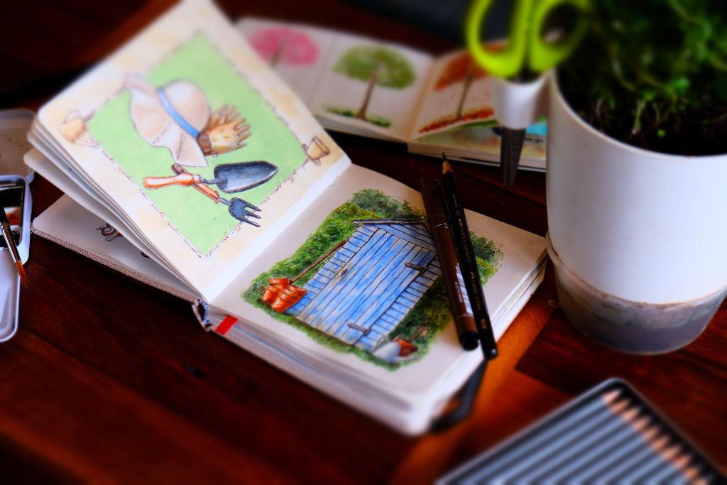Below is a sampling of finished pieces, quick sketches, experiments, and little windows into the worlds I’m building. Some become notebooks, products or prints; some simply stay part of the creative journey.