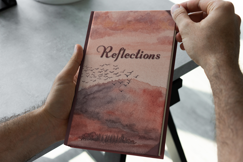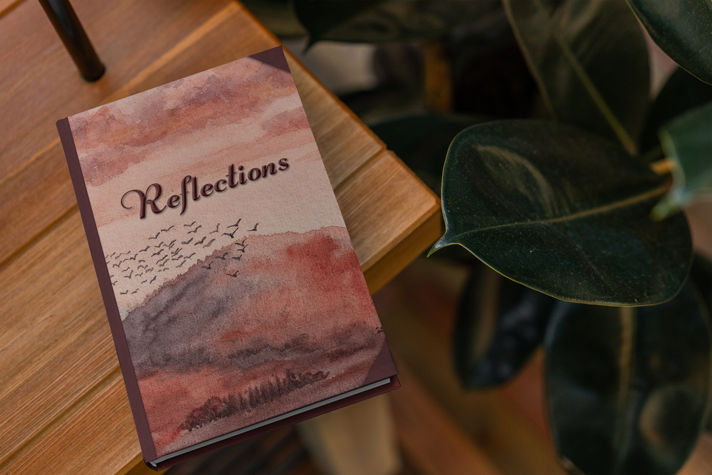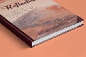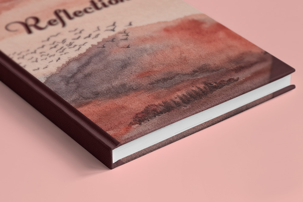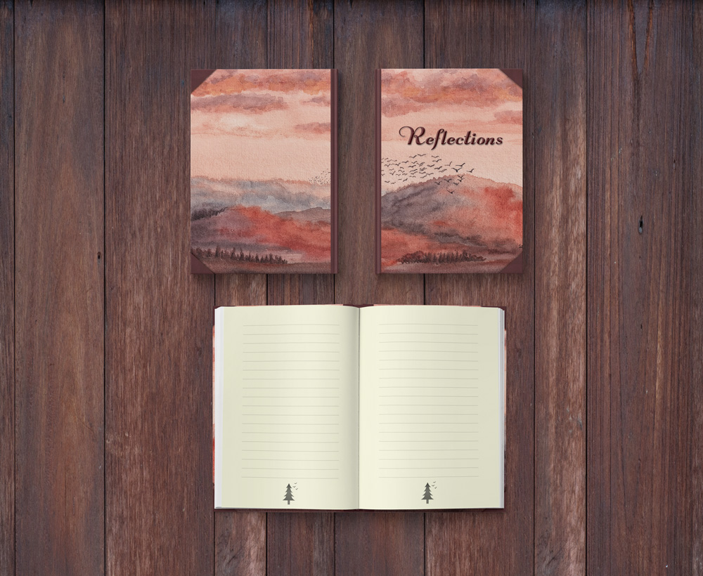 We’ve designed it with the classic leather* spine and corners of books from a bygone era, representing the past or something we can look back on. The spine and corners frame the original watercolour art like a little window into this scene; a view into reflections of our days, memories, thoughts, dreams.