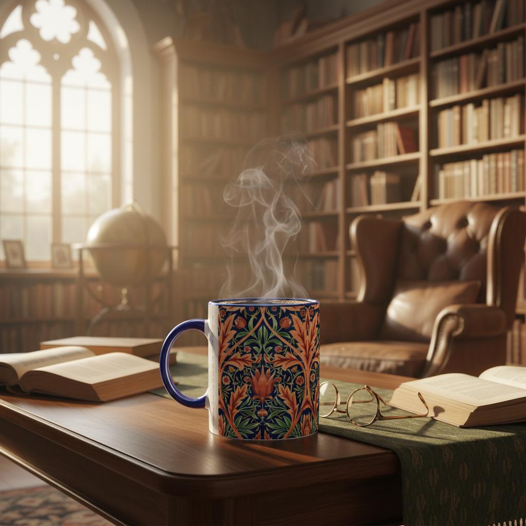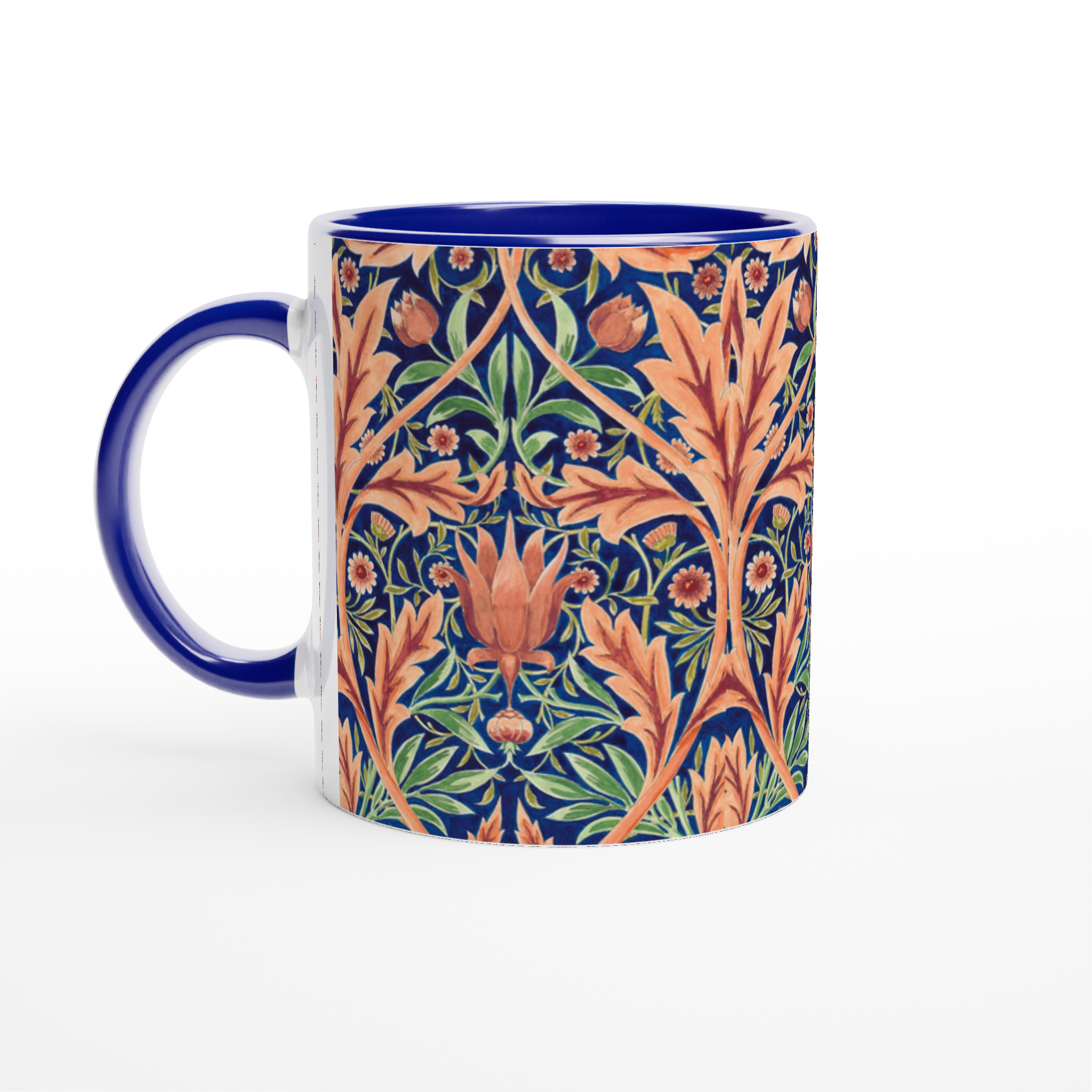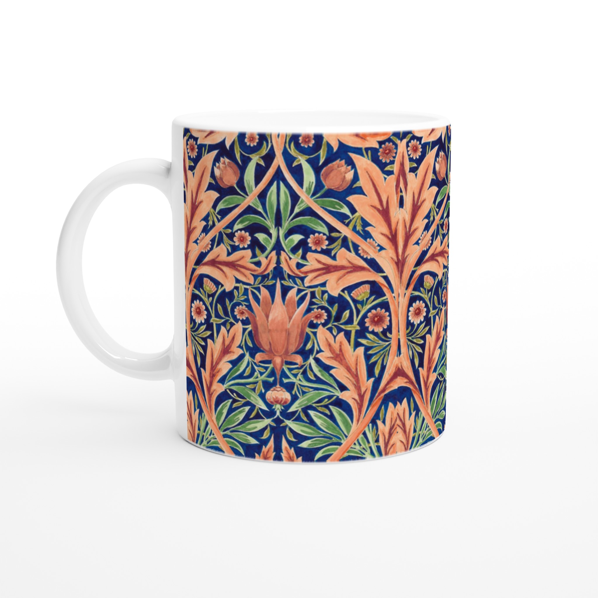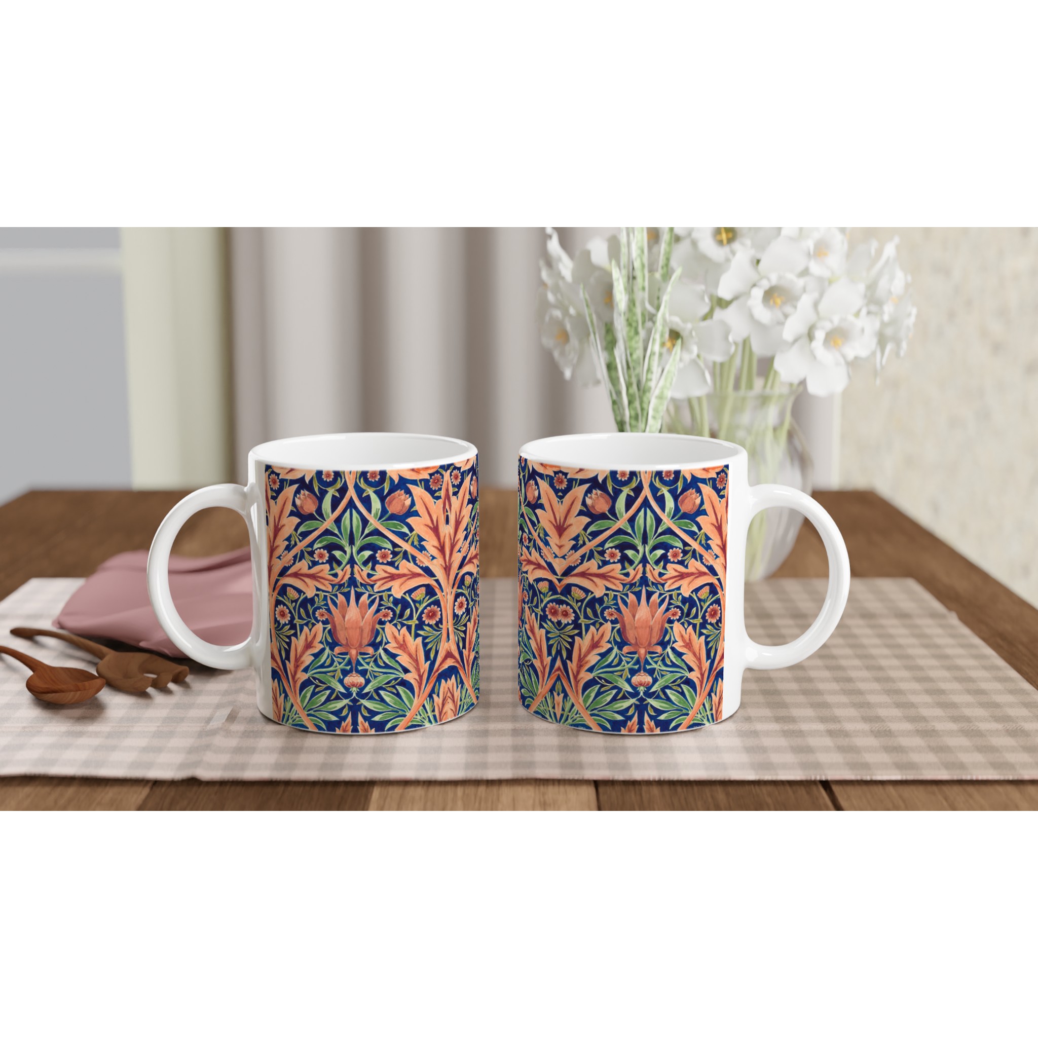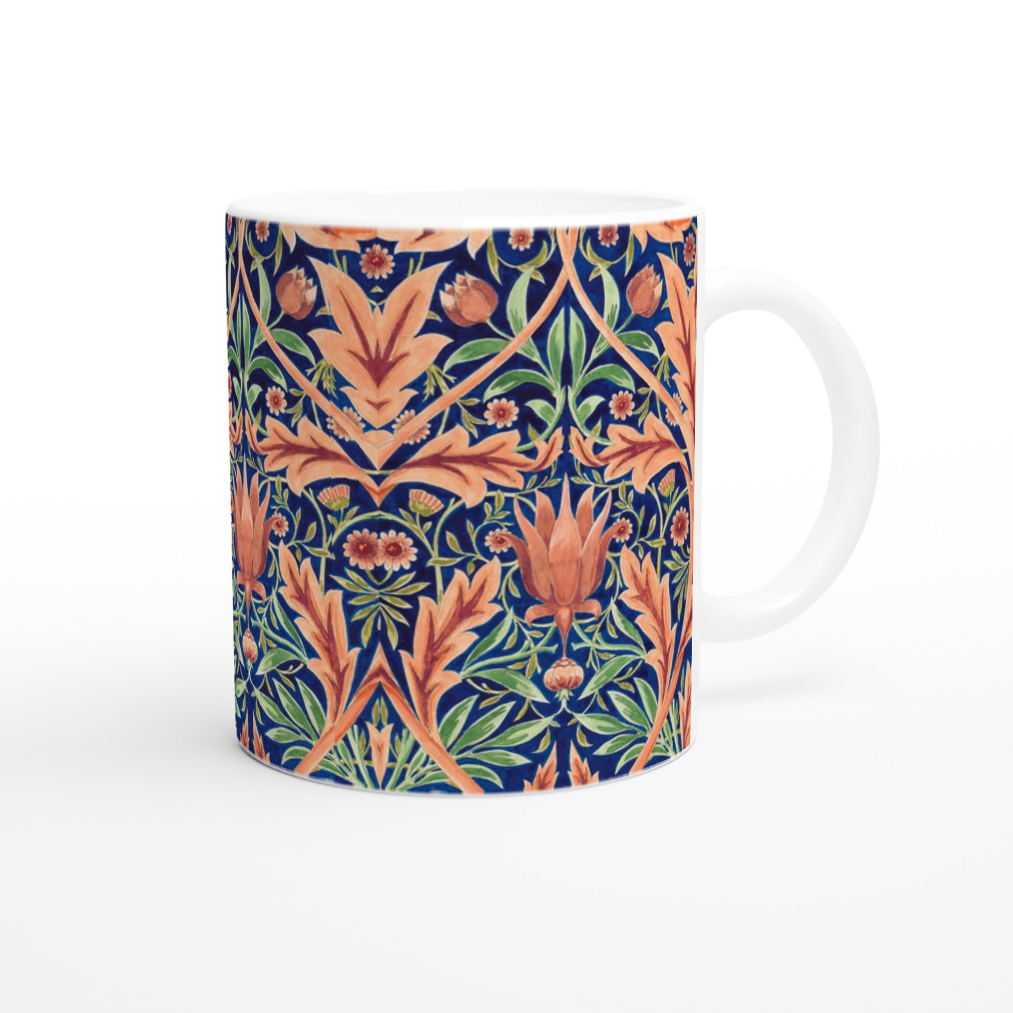 For the patterned one, the artwork wraps the entire mug so no matter which way you hold your mug, the image will appear. (NOTE: We’ve tried to position the original pattern so it makes a wrap-around image, but a few minor joins will be visible.)