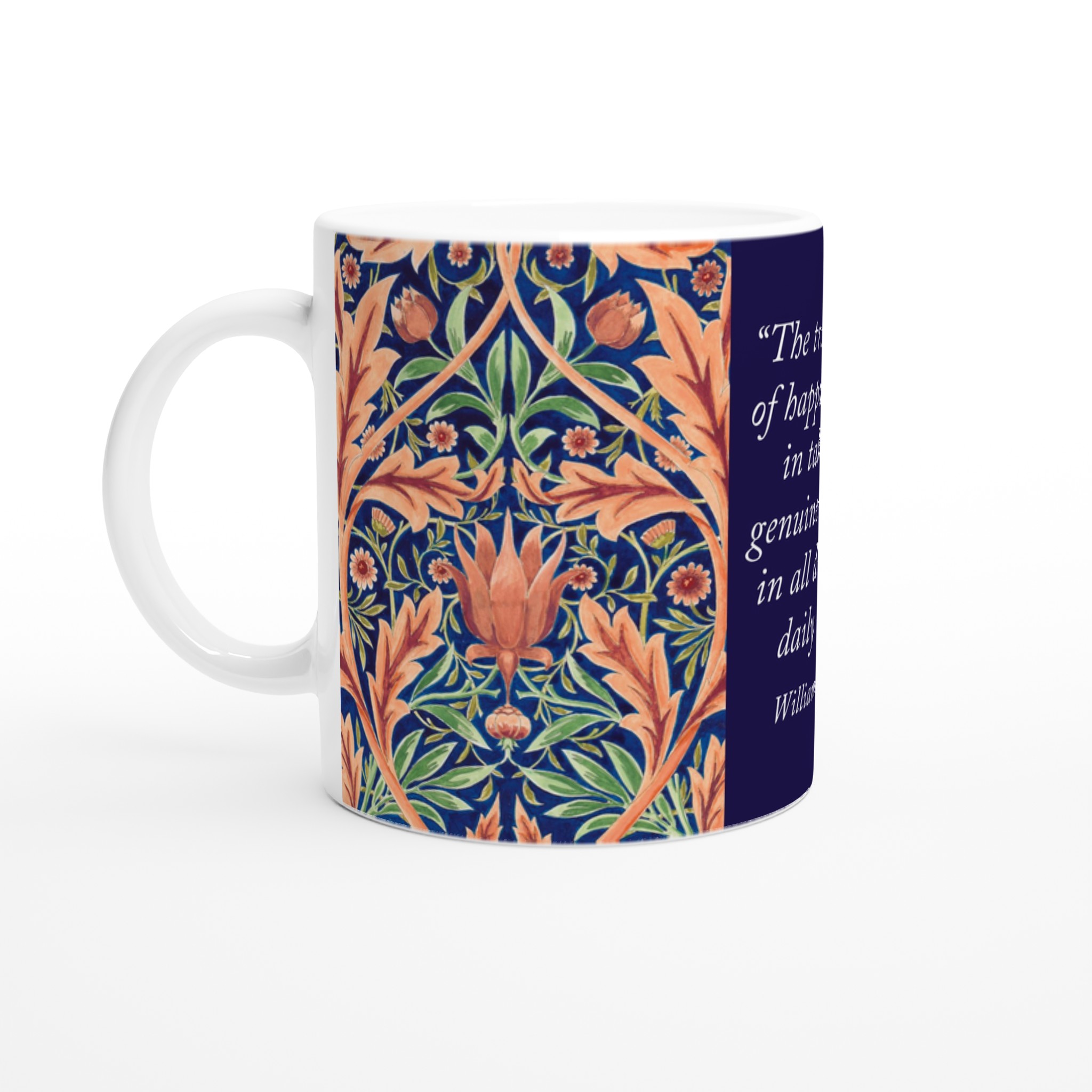 Painted in gouache, this design is a nod to one of our favourite pattern designers and artists: William Morris. This design is a re-colouring of the pattern that he used on a tile panel in 1876. To that end, we’ve also created a second version that has our favourite William Morris quote on it: