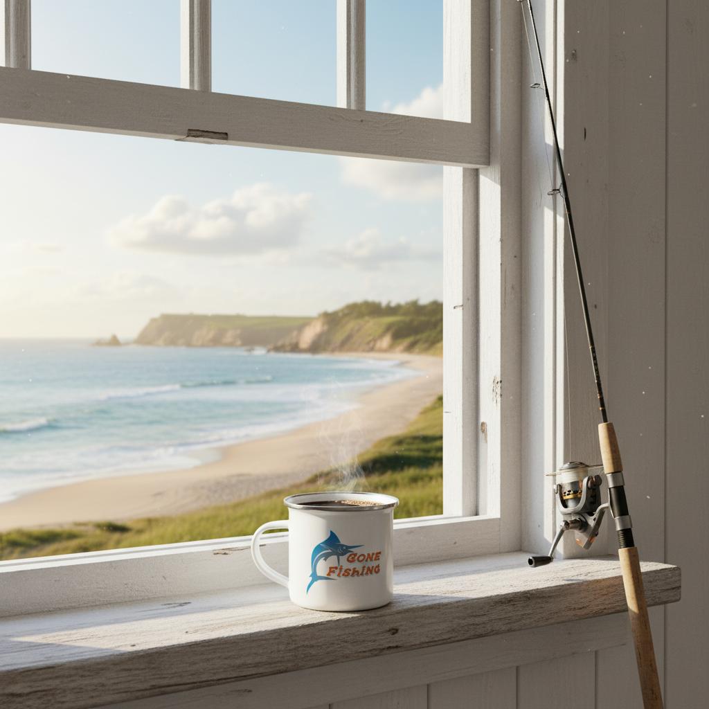 This lightweight enamel mug is perfect for days out fishing, but don’t let its durable lightweight design stop you from using it for everyday cuppas as well. Being enamel, it keeps drinks quite hot, and the design, using Naomi’s digital artwork, is simple and clean enough to work for everyday use as well.