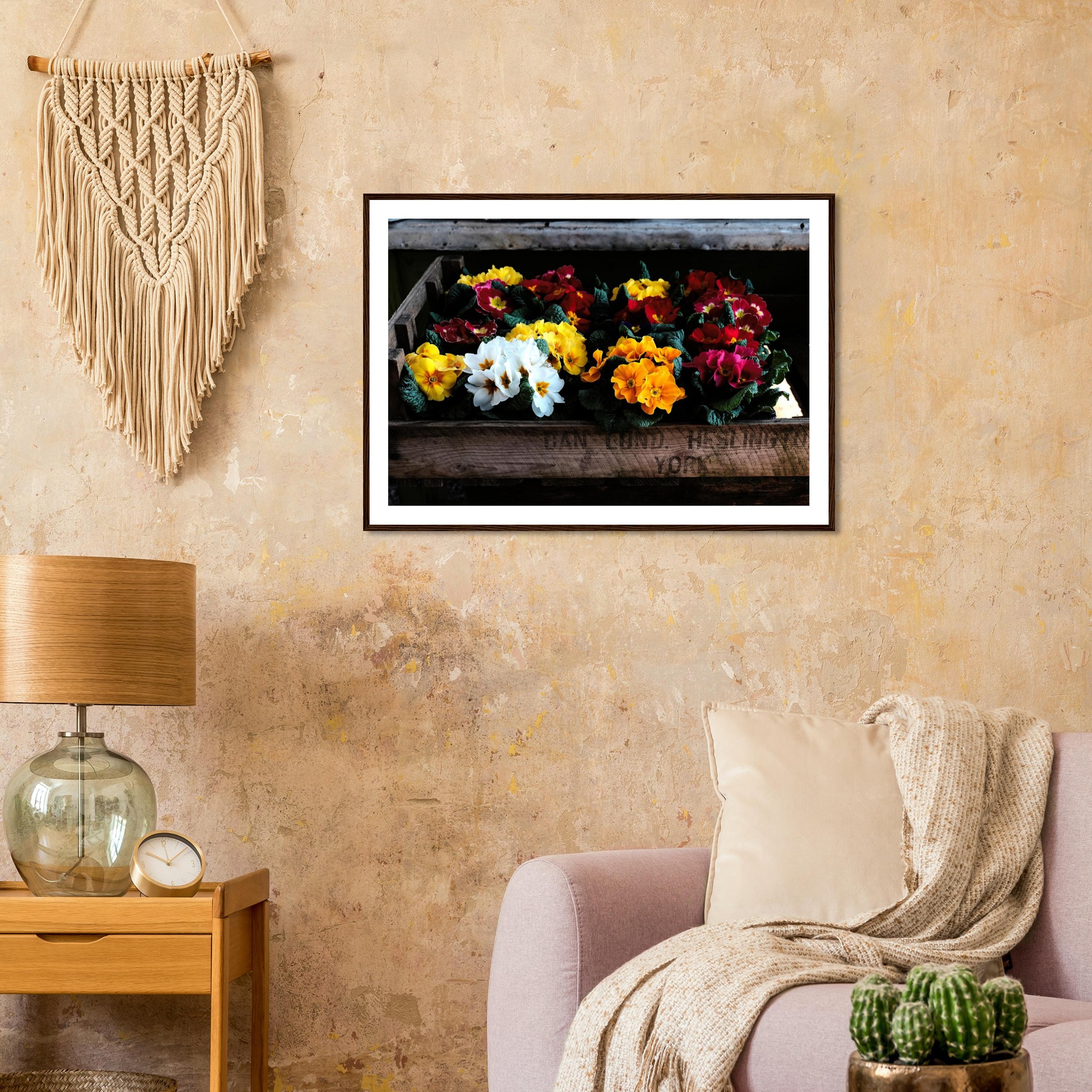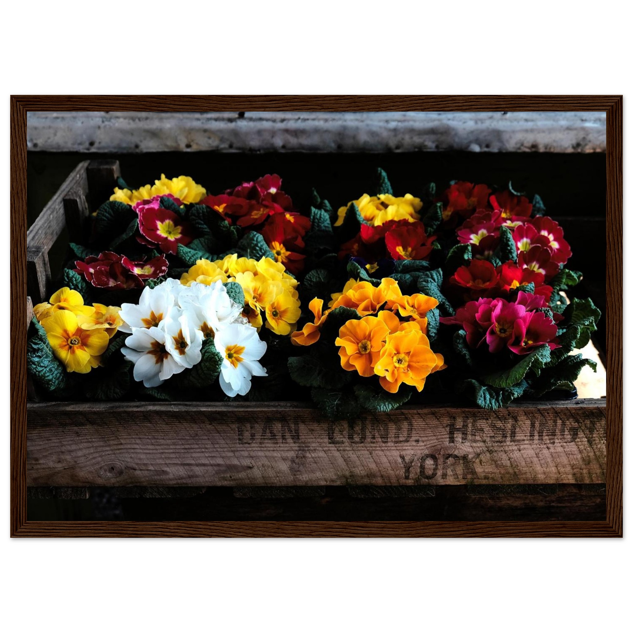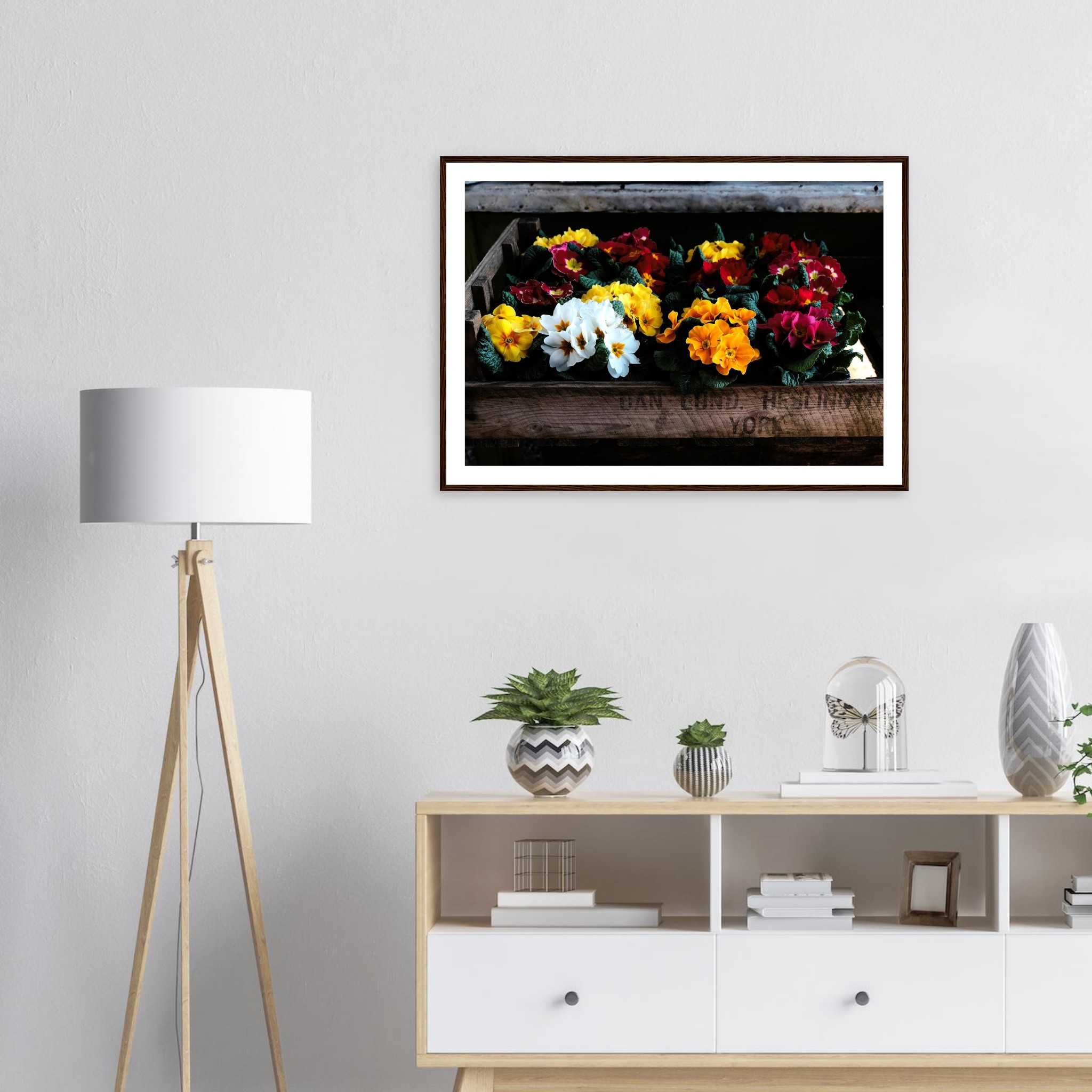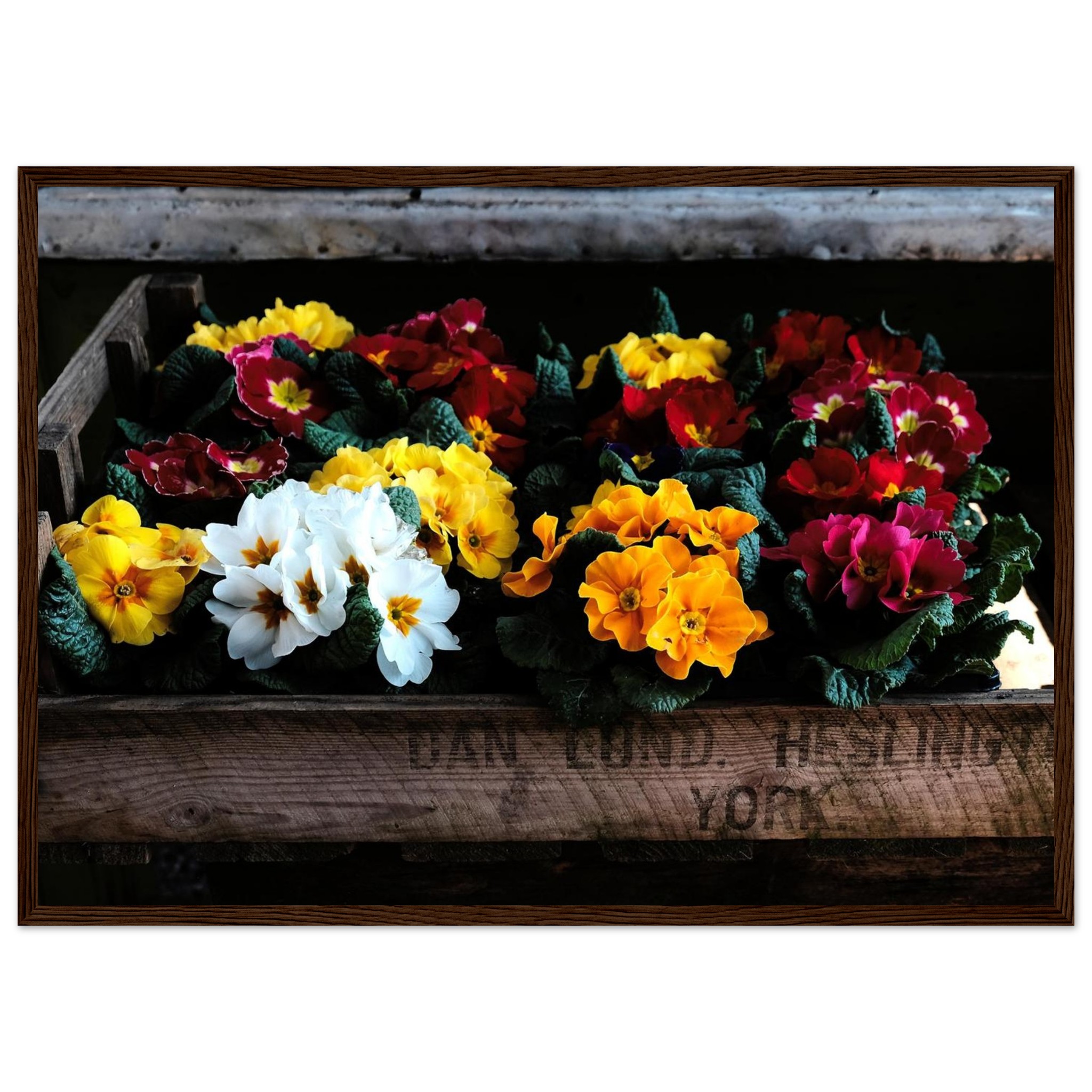 Four wooden frame colours: Black, White, Wood, Dark Brown Wood