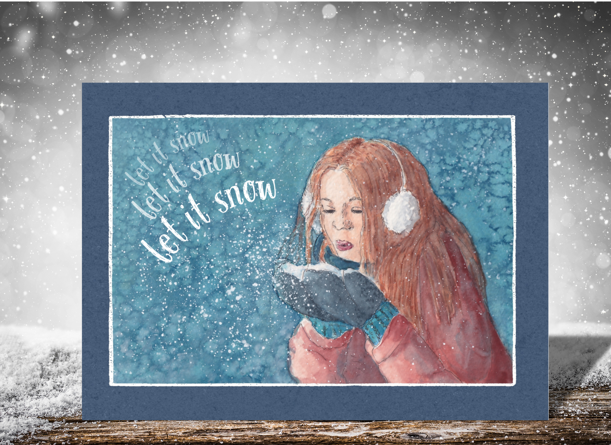 xmas “Let it Snow”: 10 Folded Cards TWO SIZES (white envelopes)