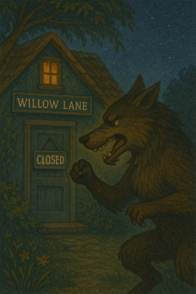 Out of the blue, the company who guarded the shop’s treasure chest — the place that took the coins from travellers and delivered them safely to the sisters — was invaded by a creature known throughout the land as the Big Bad Wolf.